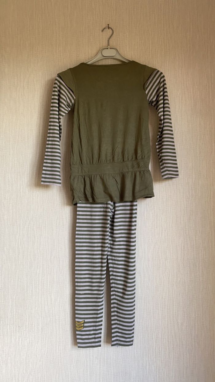 Ensemble Orchestra -Tunique kaki et manches rayés Taille 12 ans -Legging rayé kaki et gris Taille 10 ans mais taille grand Excellent état #amandinefille12ans #amandinefille11ans #amandinefille10ans