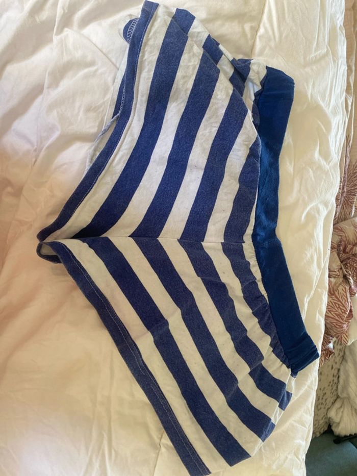Short a rayures Bleu et blanc Chiffre 47 ecrit Taille 2 (S/M) Couleur un peu décolorée