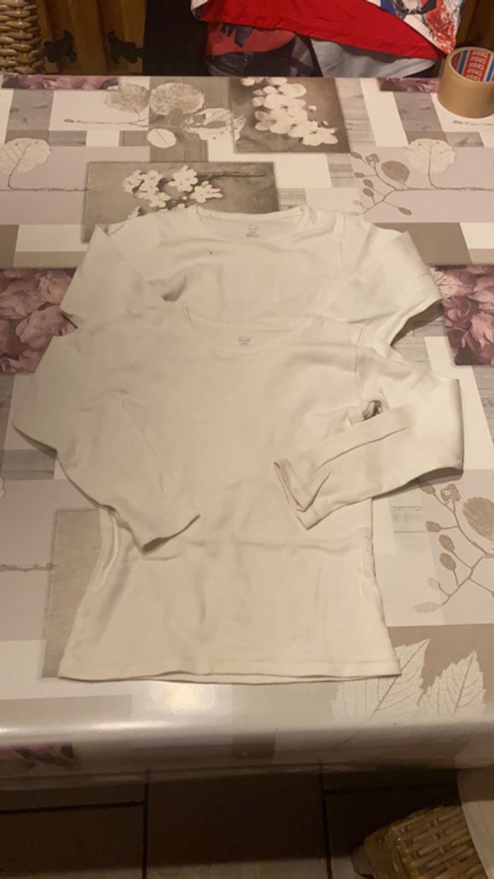 Lot de 2 Maillots de corps blanc longue manches 1 a une petite tache (Photo 3) Bon état #amandinefille6ans