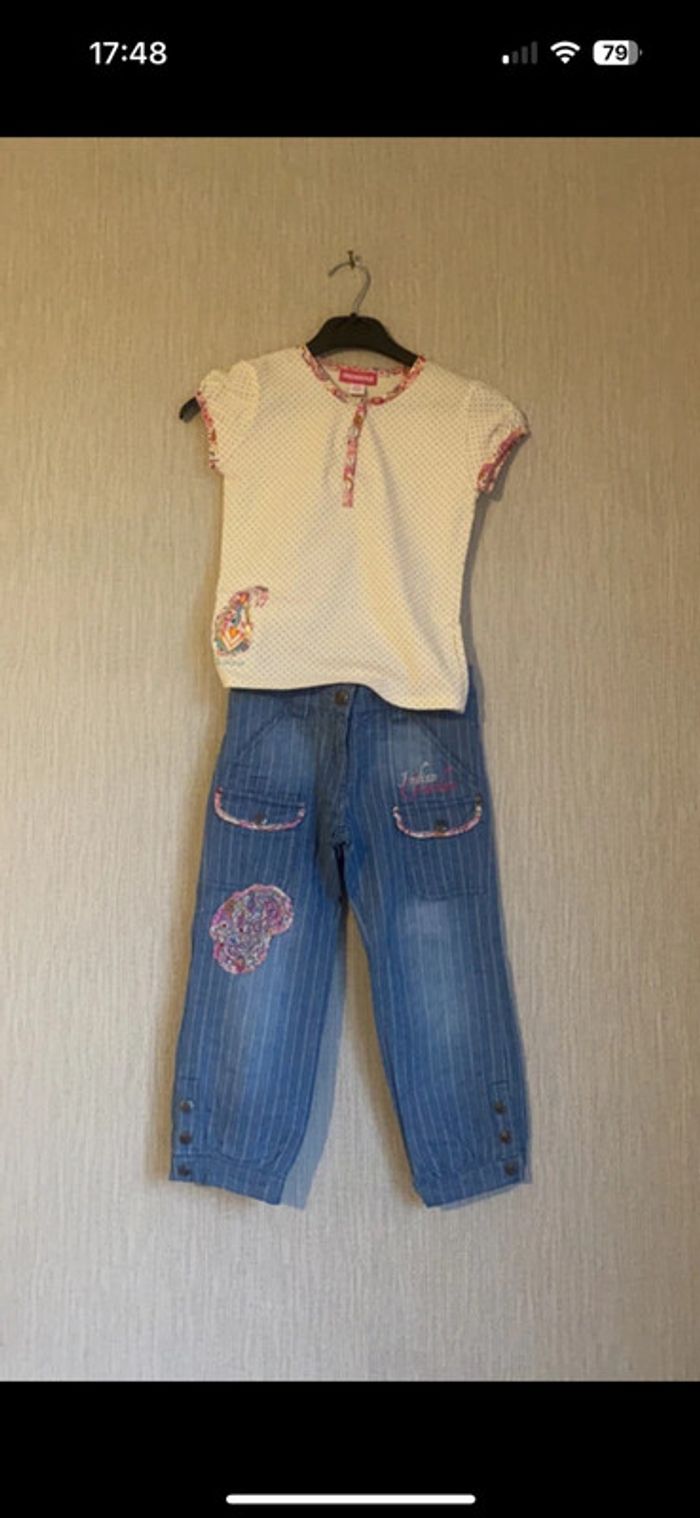 Ensemble Orchestra - jean Taille 8 ans, serrable à la taille et court au niveau des jambes - T-shirt à pois rose Taille 6 ans, taille assez grand Ensemble idéal 7 ans Très bon état Réduction si lot #amandinefille6ans #amandinefille/ans #amandinefille8ans