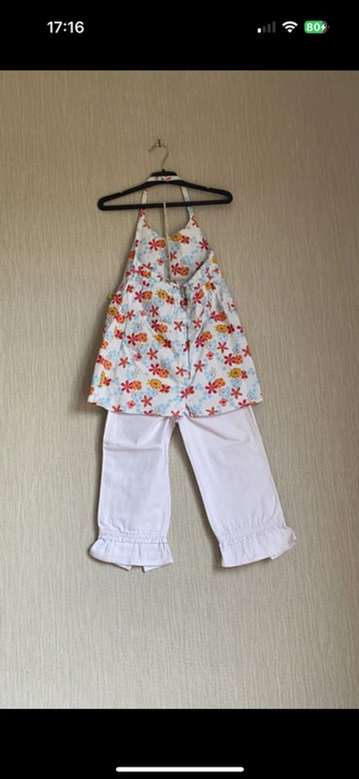 Ensemble La compagnie des petits -Pantacourt blanc -Tunique dos nu fleurie Taille 6 ans Très bon état #amandinefille6ans
