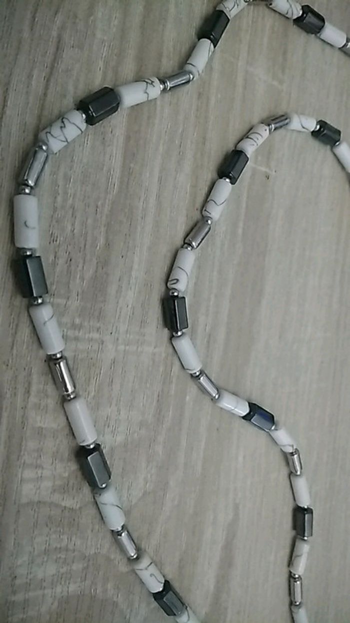 Collier magnétique blanc marbré gris. - photo numéro 1