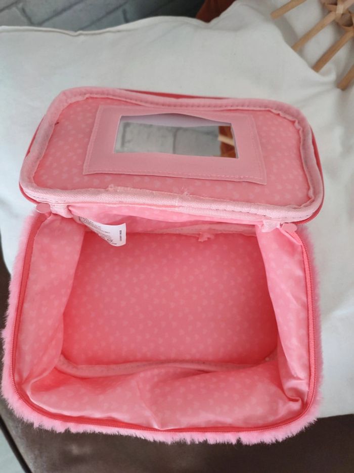 Vanity / Trousse de toilette petite fille 🩷✨ Adorable vanity rose en moumoute, parfait pour les petites coquettes ! 🎀 Détails : Coloris rose doux Matière : moumoute toute douce Miroir intégré à l'intérieur 🪞 Décoré de paillettes ✨ Fond rigide pour une bonne tenue Fermeture zippée pratique 💄 Idéal pour ranger ses petits accessoires, bijoux ou maquillage enfant. ✅ Très bon état ✅ Remise possible sur les lots activité