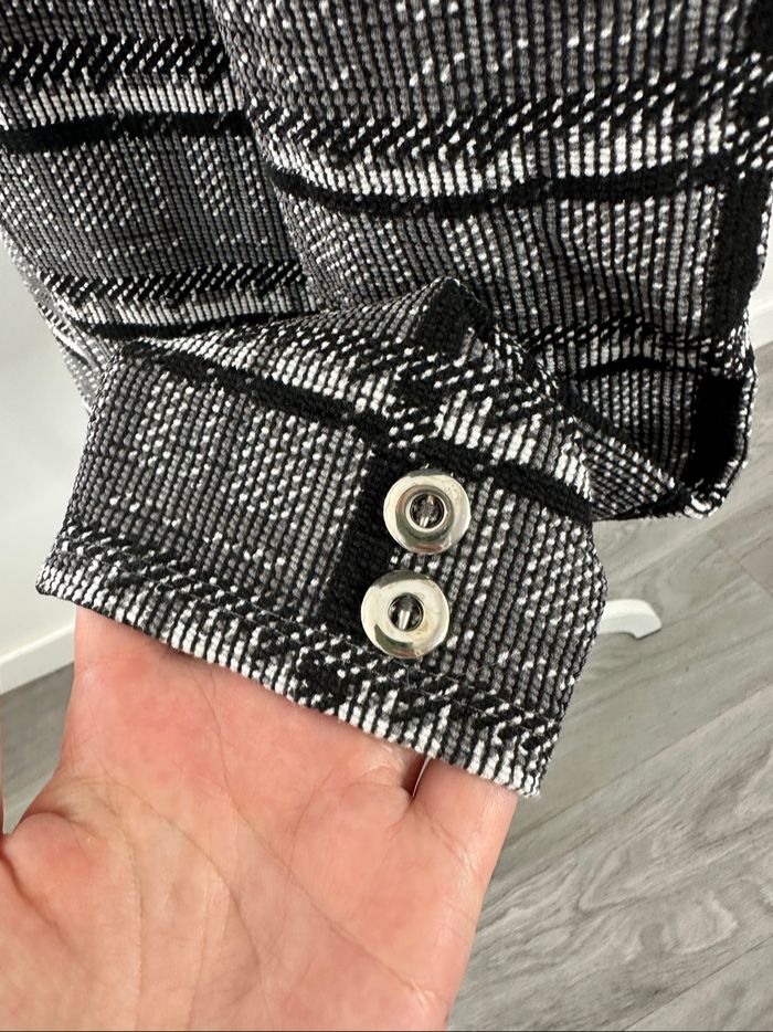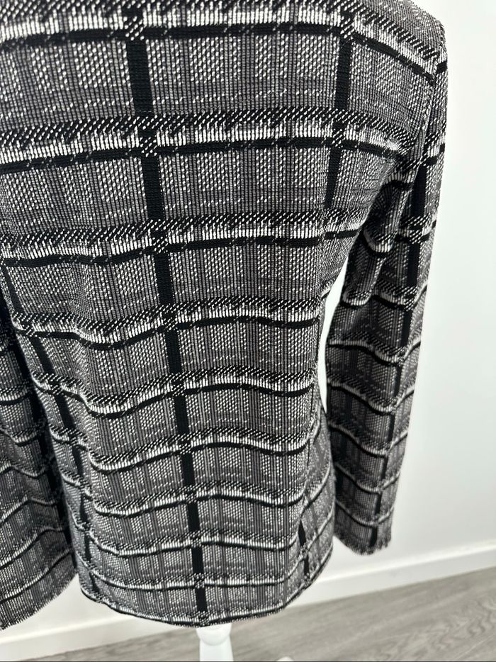 Sweatshirt blouse - Excellent état - Taille 40 équivalent L Dimensions en bas de l’annonce - Marque Zara - Gris blanc et noir - À carreaux, tartan - Boutons au niveau des manches - Viscose, polyester et élastane Dimensions: - 52cm niveau aisselles - 70cm de long