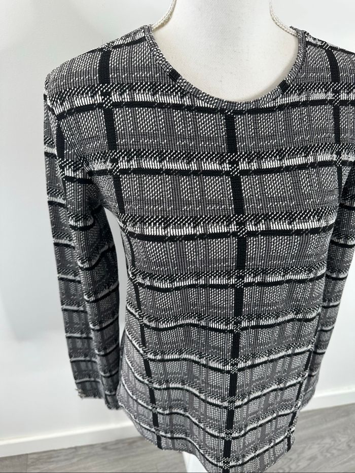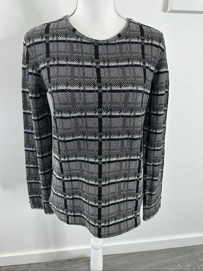 Sweatshirt blouse à carreaux tartan blanc gris et noir Zara T40 L