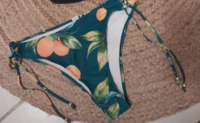 Envie d’un look vitaminé pour l’été ? Ce bas de maillot est fait pour toi ! 🌴 Motif agrumes ultra frais 💚 Coloris vert foncé avec cordons réglables sur les côtés 📏 Taille L (convient aussi à un M ajusté grâce aux liens) 💦 Neuf – non étiqueté 🔅 À mixer avec un haut uni ou coordonné 📬 Envoi rapide et soigné #bikini #été #plage #maillot #tropical #basdemaillot #summerstyle