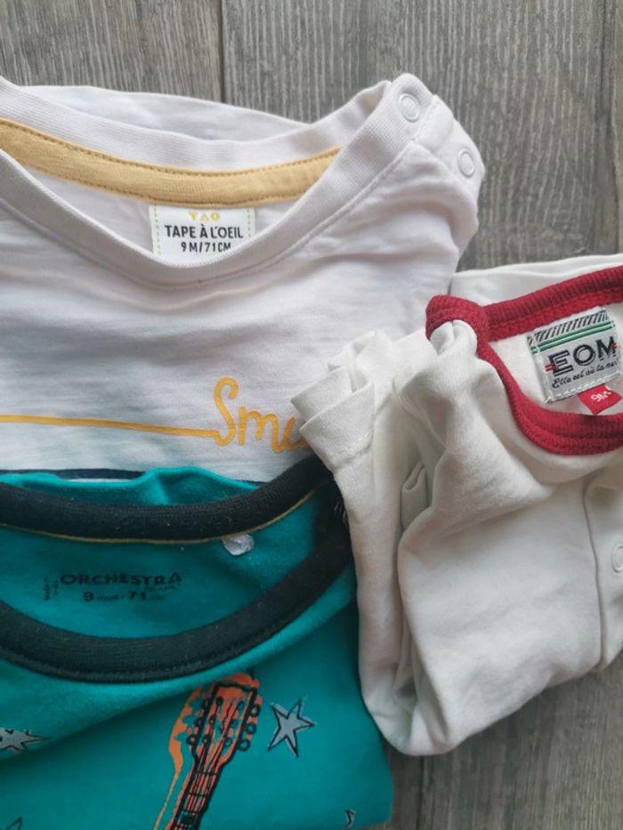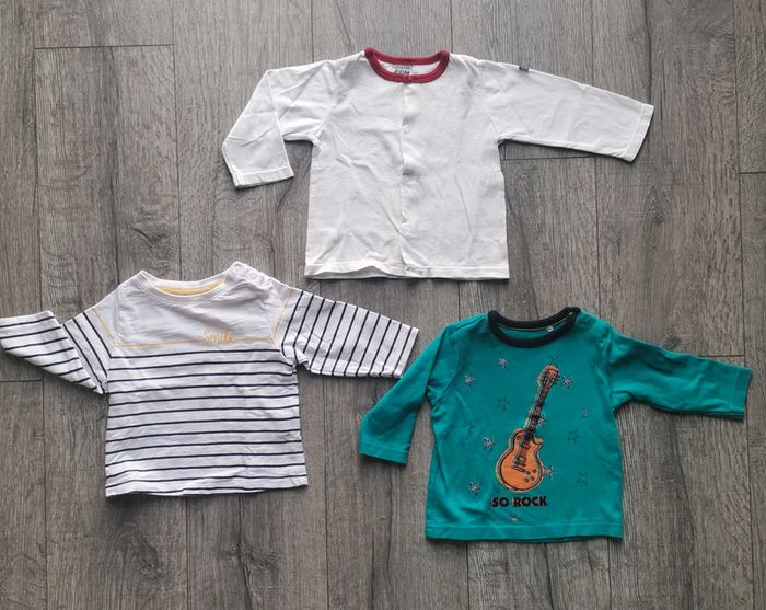 Lot de 3 hauts garçon 9 mois. Très bon état. Seul le blanc et rouge présente une tache voir photo. #garçon9moisptilu12