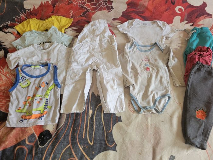 Bonjour, Ce lot en 18 mois est idéal pour que les enfants puissent ce salir sans peur ! En effet TOUS les vêtements de ce lot sont tachés et/ou troué ! Ça ne part pas (sauf si vous avez la recette miracle 😆) Donc ou soit à récupérer gratuitement en main propre ou vendu pour 1€ symbolique