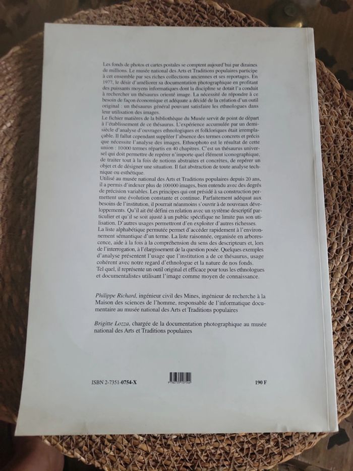 Thésaurus élaboré par les conservateurs et chercheurs du Musée et du Centre d'ethnologie française comme outil d'analyse du fonds photographique et des cartes postales du musée national des Arts et Tradition populaires. Éditions de la Maison des science de l homme, Paris. Valeur neuf : 39e Céder : 25.90 Envoi rapide et soigné Vous pouvez si vous le souhaitez composer un lot, ainsi pour ne paierez qu une seule fois les frais d envoi...👍🌞😸