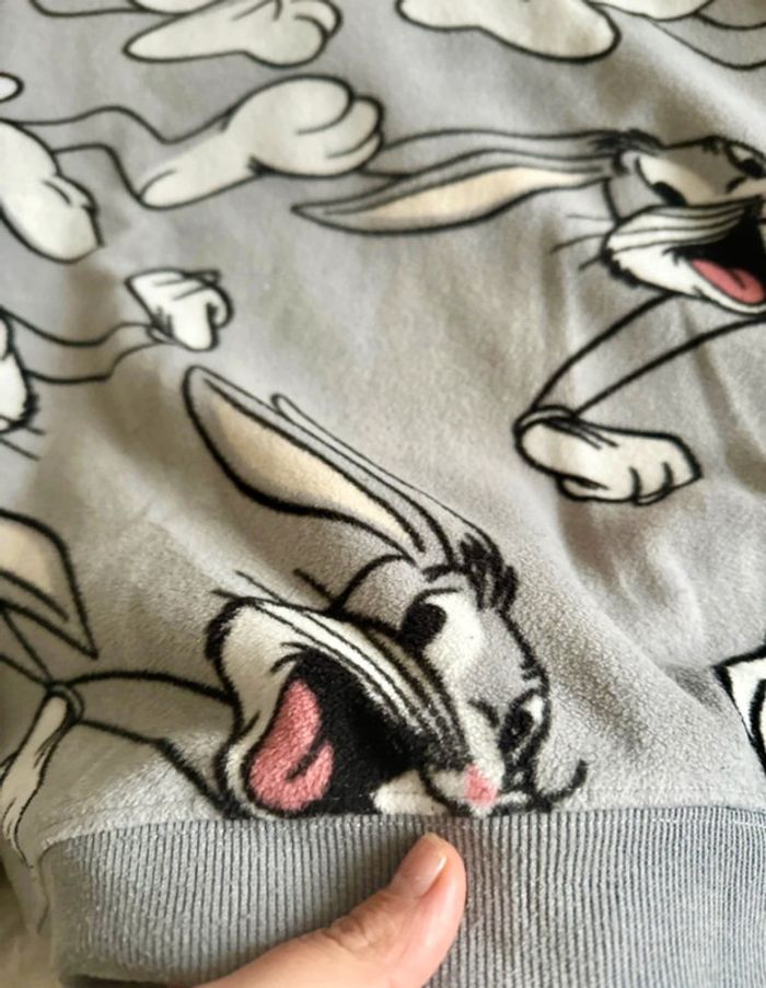 Pull relaxed fit looney tuns bugs bunny Pull matière polaire 73cm longueur 55cm épaules Très peu porté comme neuve Taille XS oversize Porté comme taille pour effet serré S #mmebarbier54hommexs #mmebarbier54hommes