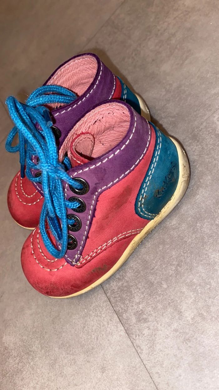 Kickers pour fille. La chaussure droite est un peu abîmée. Chaussures géniales pour l’apprentissage de la marche et le maintient du pied. Taille 20