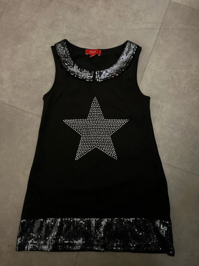 Jolie robe noire à strass et paillettes argentés pour petite fille. Taille 4 ans. Idéale pour les fêtes ou une soirée.