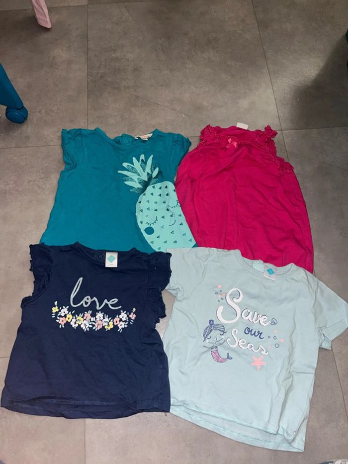 Lot de 4 tee shirts pour fille de différentes marques. 100% coton. Taille 12 mois.