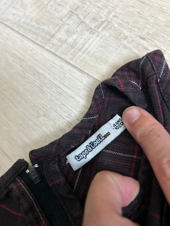 Jolie robe prune avec des lignes roses. Taille 4 100% coton