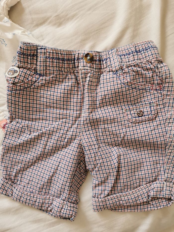 Composé d'une chemisette blanche imprimée requin et d'un short vichy