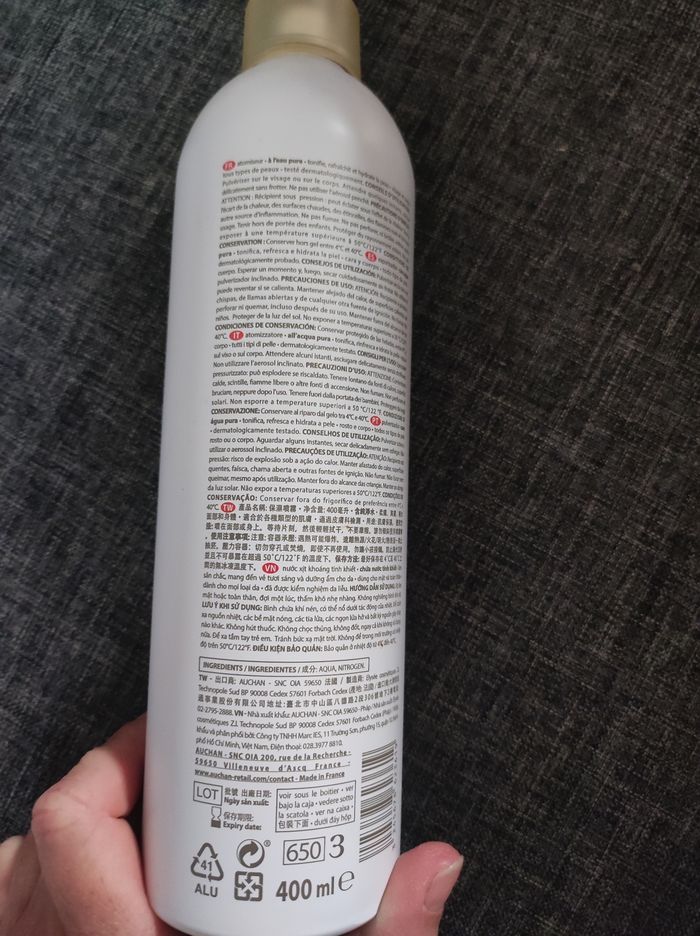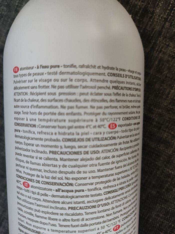 Atomiseur à l'eau pure Cosmia (brumisateur) 400ml comme neuve Doit contenir quasiment la totalité Atomiseur a l'eau pure Tonifie, rafraîchit et hydrate Tous types de peaux