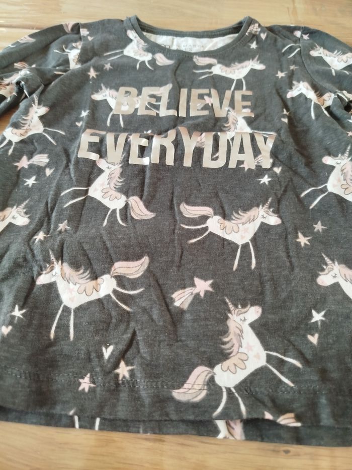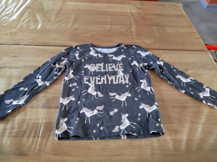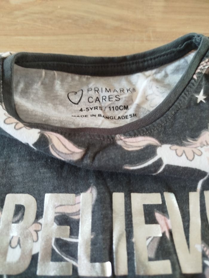 Maillot manche longue couleur gris foncé motif licorne marque Primark taille 4-5 ans