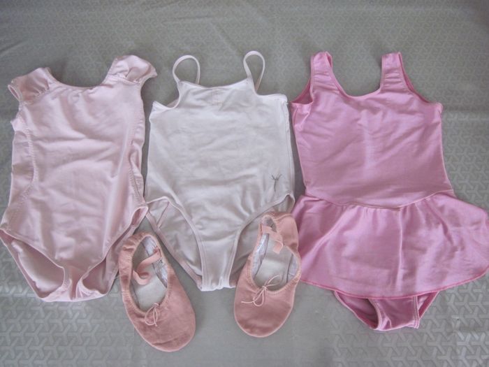 8 ans, 3 tenues de danse + paire de chaussons offerte (+ étiquette pointure), domyos,