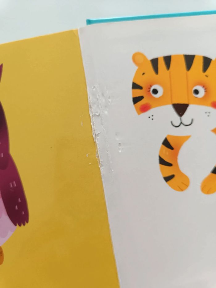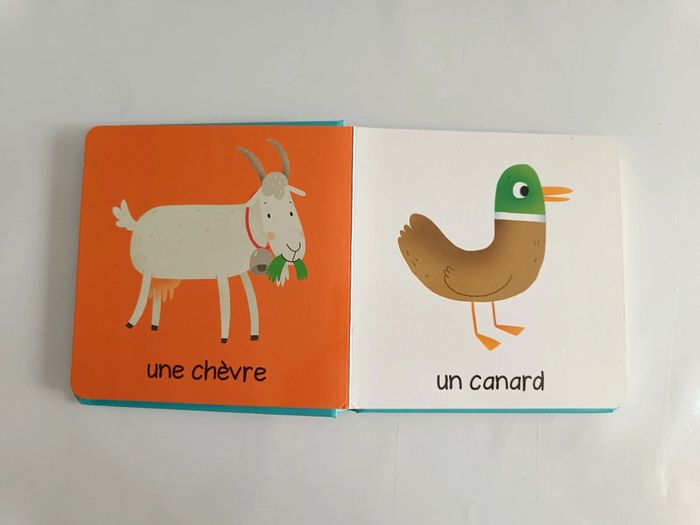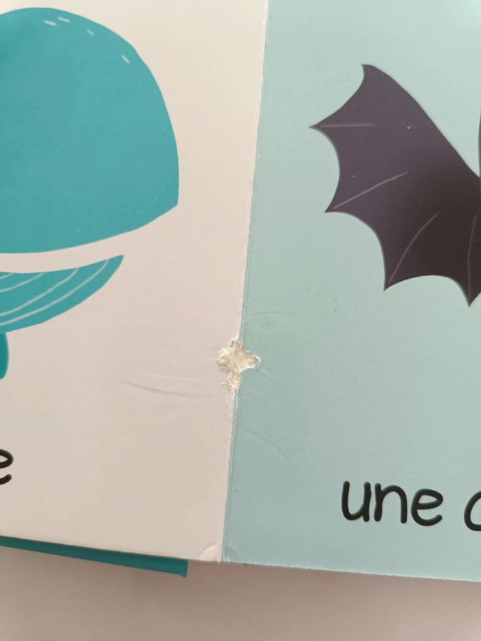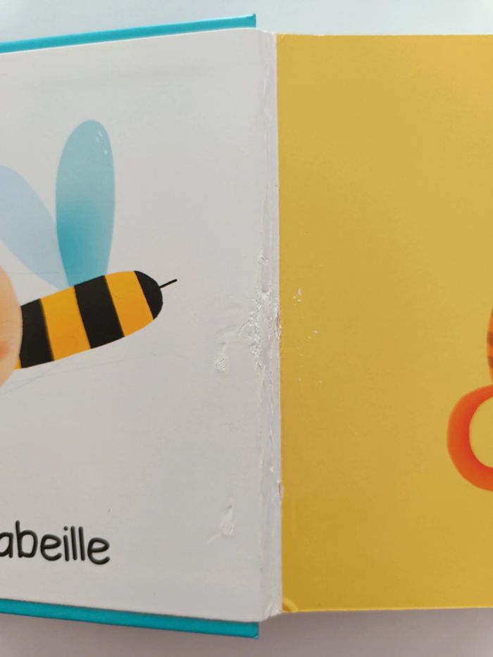 Pages cartonnés. Livre abîmé (voir photos) Animaux : abeille, chat, chèvre, canard, baleine, chauve-souris, mouffette, koala, hippopotame, pélican, blaireau, chien, kangourou, taupe, loup, lion, perroquet, tortue, serpent, poussin, rhinocéros, ours polaire, hibou, tigre. #melody45340livreenfant