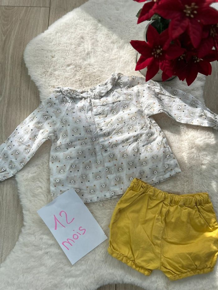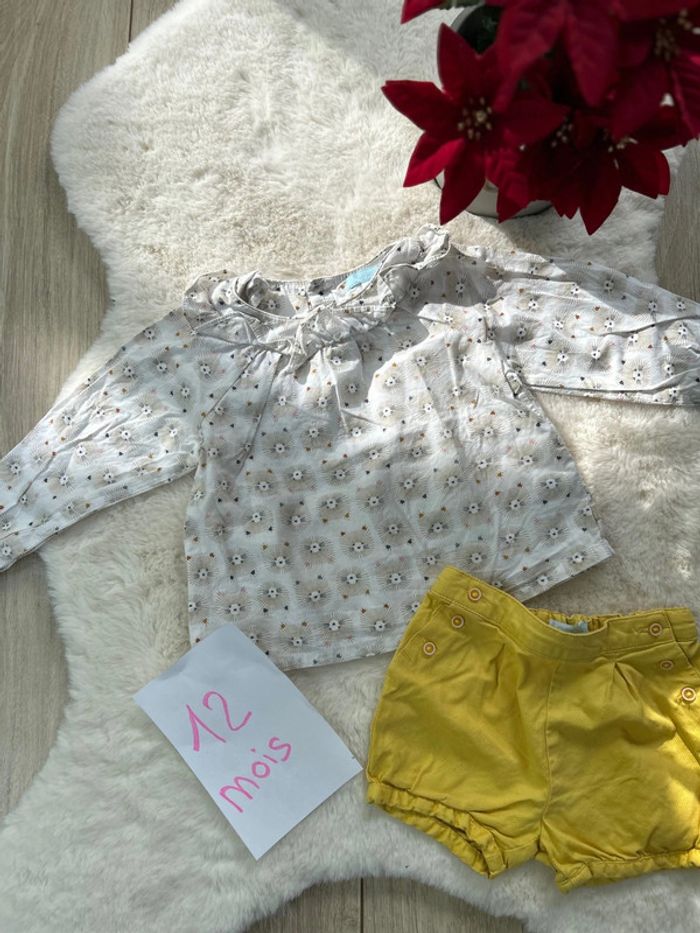 Ensemble fille avec sa blouse légère et son short jaune Taille 12 mois Marque obaïbi En très bon état #charlinelolfille12mois N’hésitez pas si vous avez des questions