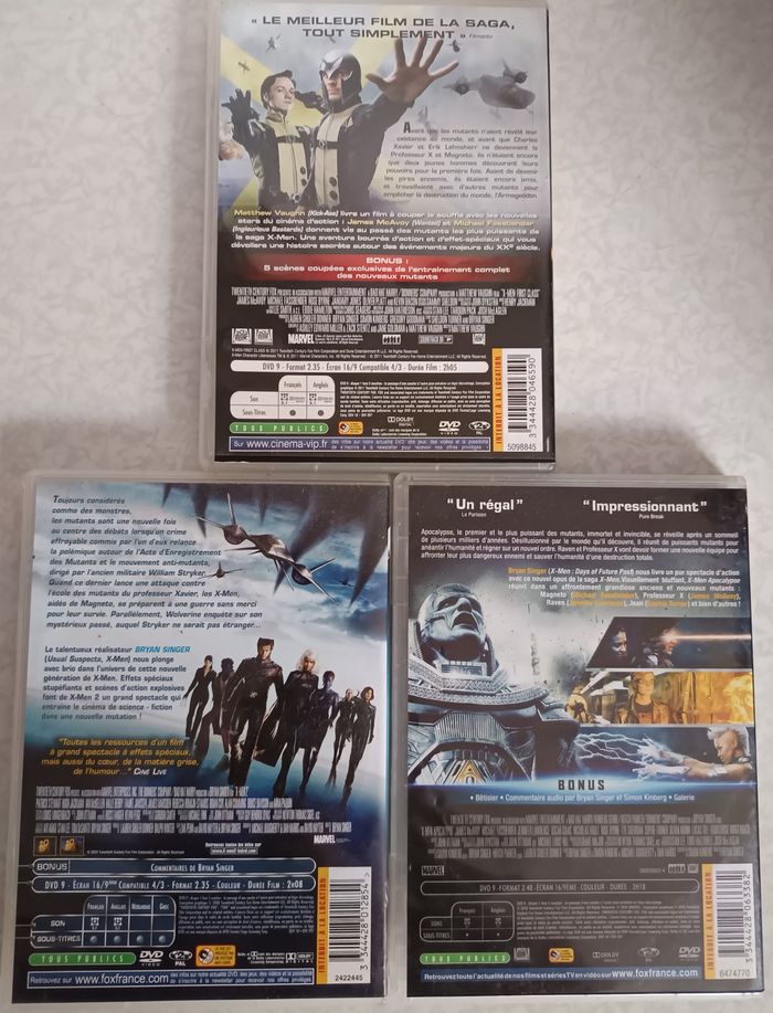 Lot de 3 DVD X-Men "le commencement", "X-men 2", "Apocalypse" dvd en très bon état général