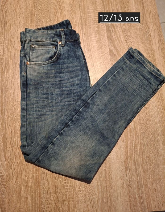 Jean délavé h&m coupe tapered 12/13 ans Coton et elasthane Un peu blanchi au niveau de l entrejambe