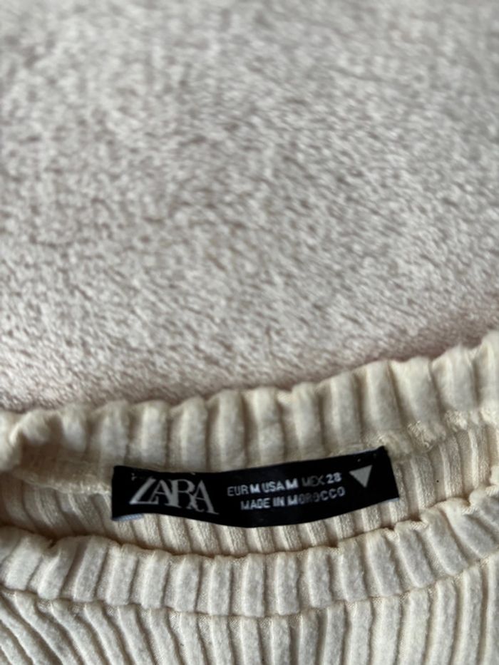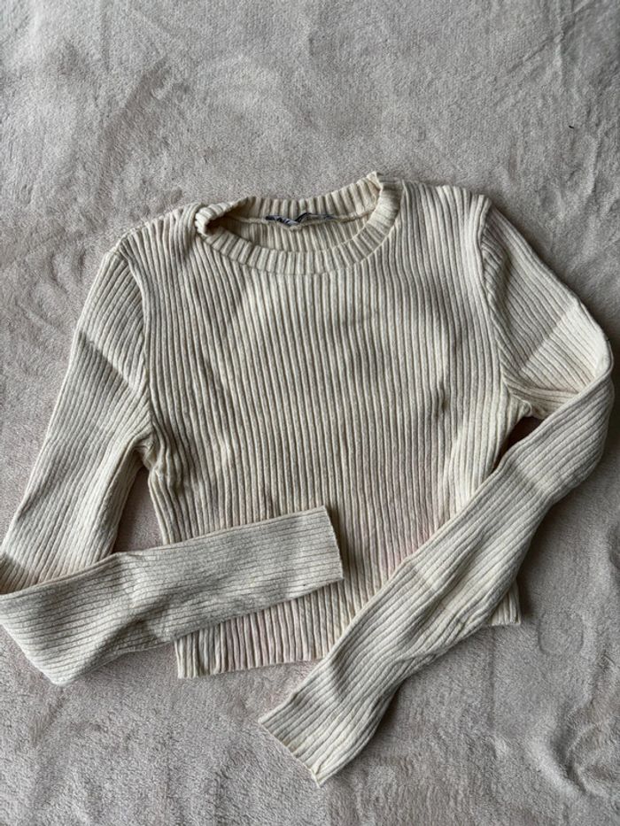 🏷️ Pull Zara, manches longues, court, col rond, matière agréable • M