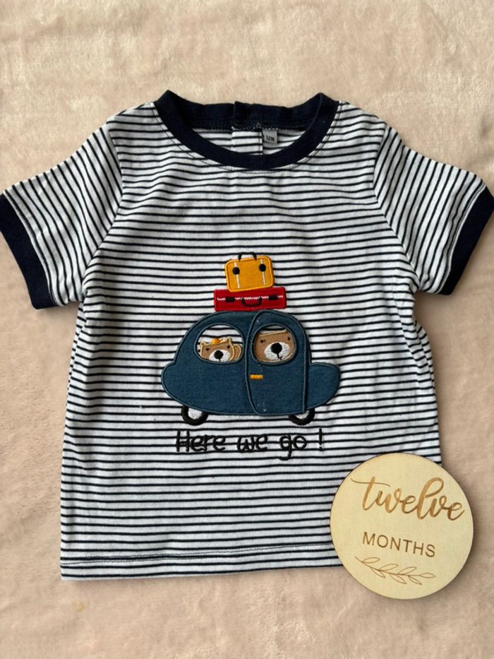 🏷️ T-Shirt, motif peut être retiré ( scratch ), manches courtes • 12 mois