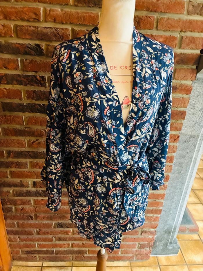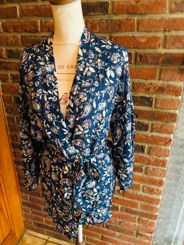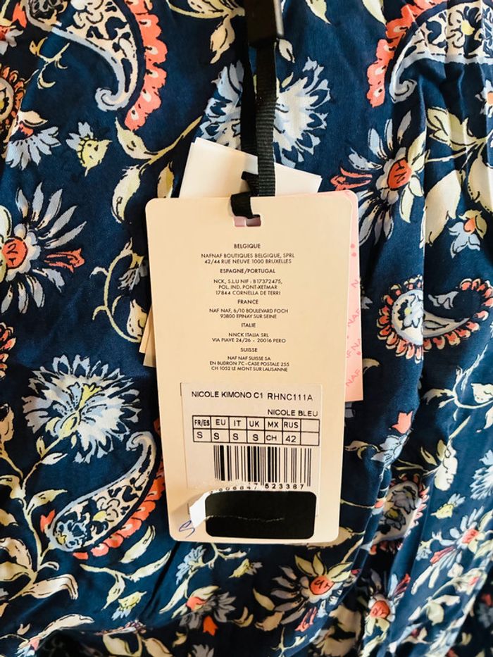 Kimono à fleurs Naf Naf Bleu marine avec motifs creme vert d’eau et corail Taille S Neuf jamais porté (valeur 54,99€)