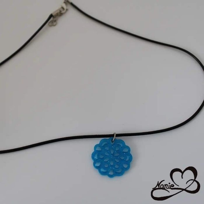 Pendentif en résine, transparent rosace bleue - photo numéro 1