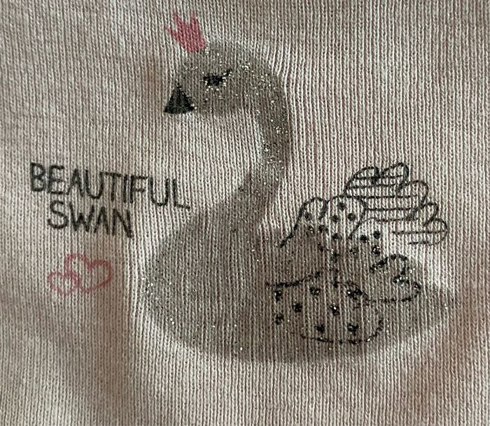 4 t-shirt Une tache sur un t-shirt voire photo. 2/3 ans Dessin de cygne et cœur