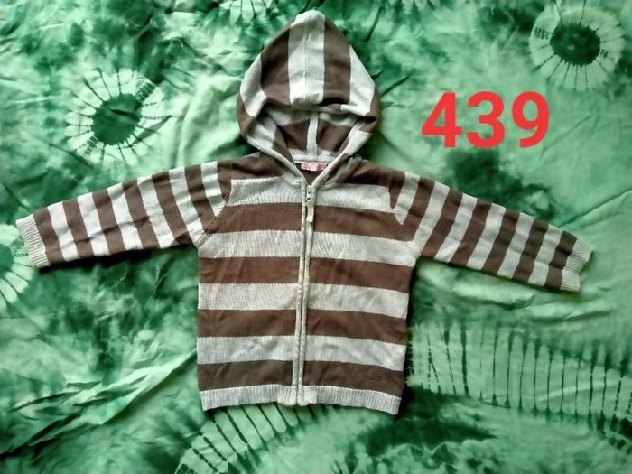 Gilet fin gris / marron capuche fermeture éclair 2 ans