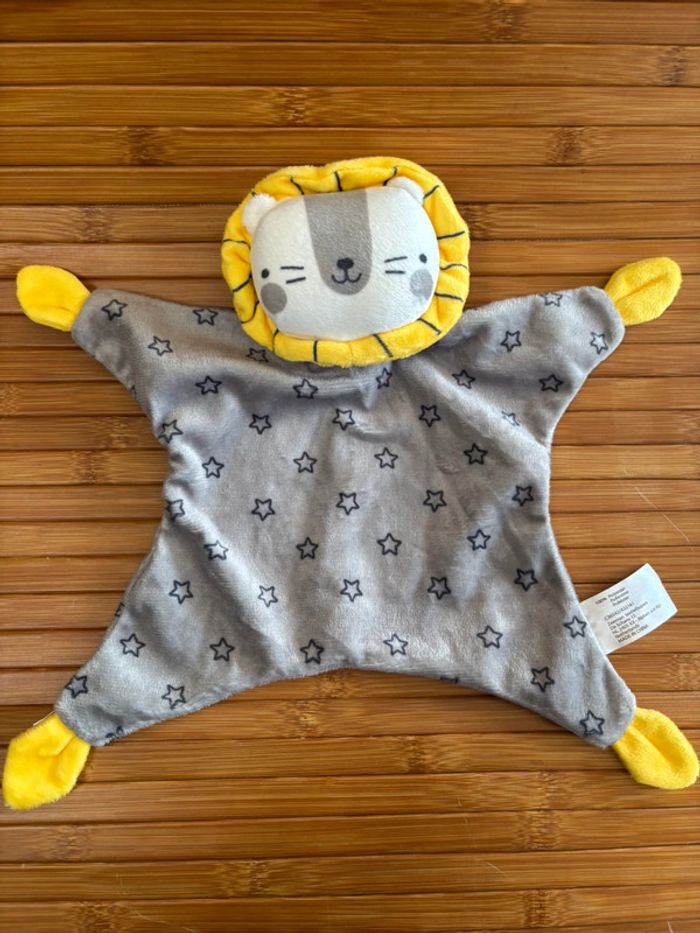 Neuf doudou plat lion gris étoile jaune grelot zeeman - photo numéro 1