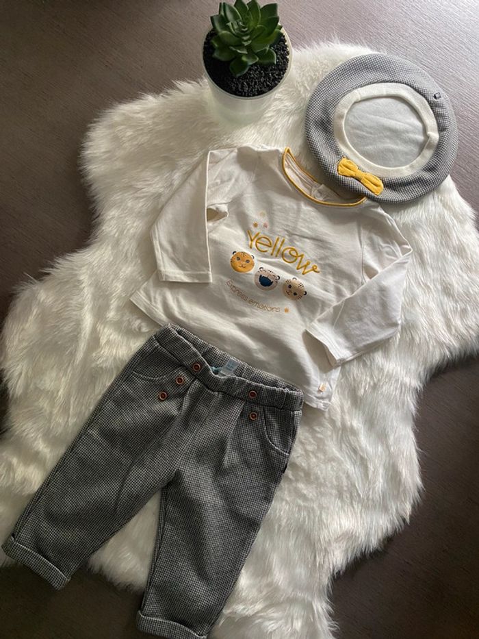 Ensemble pull et pantalon assorti avec béret taille 12mois en excellent état #tifany269bebefille12mois
