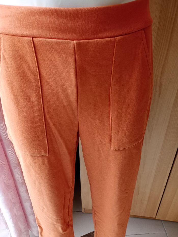 Pantalon de jogging. Couleur rouille claire. Longueur : 103 cm. Entrejambe : 77 cm. Largeur : 33 cm. Taille : S. Marque : LBLC The Label. Neuf sans étiquette.