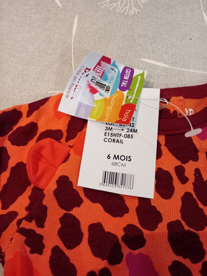 Body manches longues. 100% coton. Taille : 6 mois. Marque : DP...AM (Du pareil au même). Neuf avec étiquette.