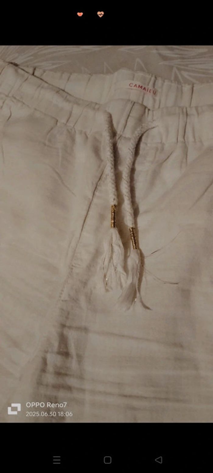 Couleur entre le blanche et le crème avec l'insérer doré poches taille ajustable convient pour un 44 même pour un 46 en excellent état J' ai un kaki de la même taille...