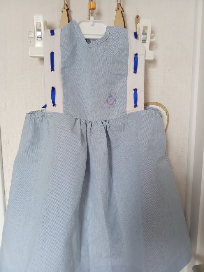 Robe vintage  fille 2 ans, rayures bleues, blanc, mi saison été - photo numéro 1