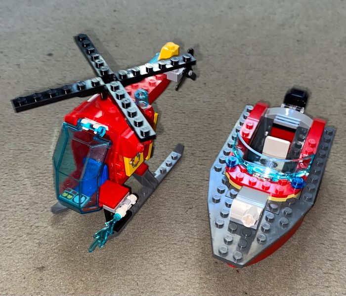 Seulement le bateau et l’hélicoptère Complet, sans notice, il manque 3 pièces