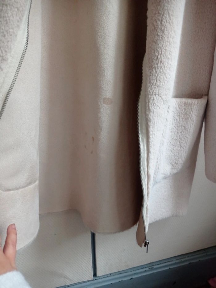 Matière très agréable à porter. Super bon état, sauf voir dernière photo. Une tâche à l'intérieur. Elle ne se voit pas une fois portée. Je n'arrive pas à l'enlever.