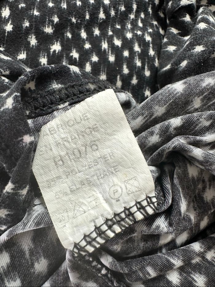 Blouse tunique - Excellent état - Taille 38/40 équivalent M/L Dimensions en bas de l’annonce - Noire et blanche - Imprimés pois - Zip au niveau du décolleté - Fabrication française 🇫🇷 - Polyester et élastane Dimensions: - 60cm niveau aisselles - 80cm de long