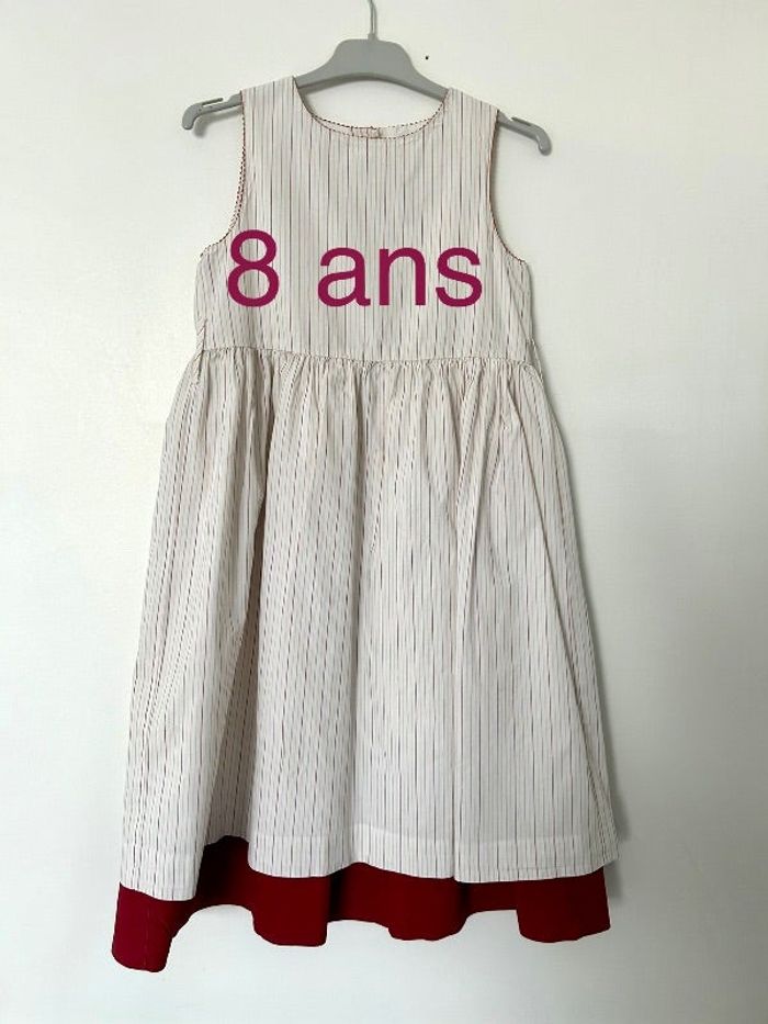 Petit prix pour cette robe car elle présente quelques petites taches (voir photos) elles ne se voient pas portées mais elles sont présentes . Robe de cérémonie Galerie Lafayette 8ans Bordeaux blanc/crème