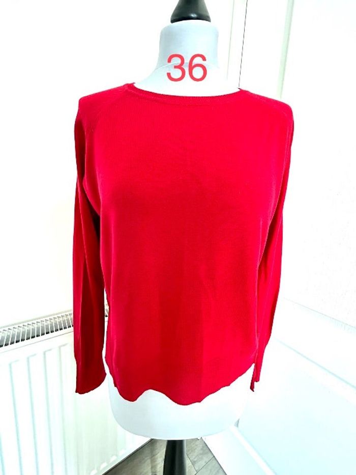 Pull Zara Knit rouge état neuf, différence de longueur => l’arrière est plus long