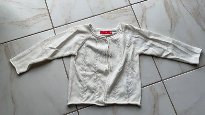 Jolie veste : idéale avec une robe pour évènement par exemple 12 mois Couleur blanc laiteux et boutons pailletés argentés Portée une fois #jp_01fille12mois