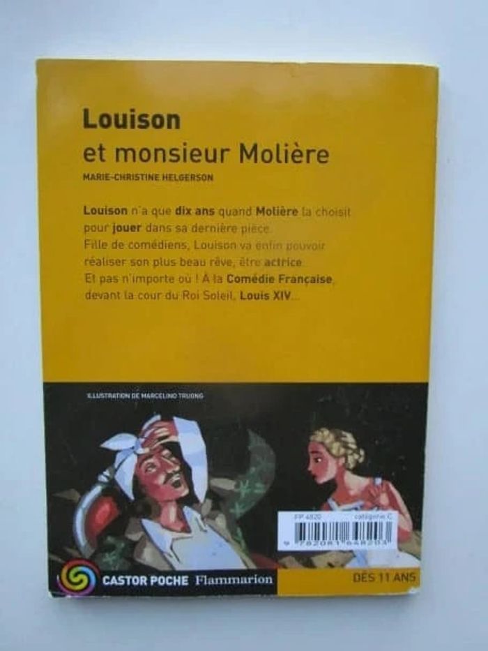 Louison n'a que dix ans quand Molière la choisit pour jouer dans sa dernière pièce. Fille de comédiens, la fillette va enfin pouvoir réaliser son plus beau rêve : être actrice. Et pas n'importe où ! À la Comédie-Française, devant la cour du Roi-Soleil, Louis XIV… Éditeur ‏ : ‎ Flammarion jeunesse 128 pages Âge de lecture ‏ : ‎ 11 - 12 ans Dimensions ‏ : ‎ 12.5 x 0.8 x 17.8 cm Livre en très bon état Je vends d'autres livres de Molière #phil_peg_molière #collège #molière