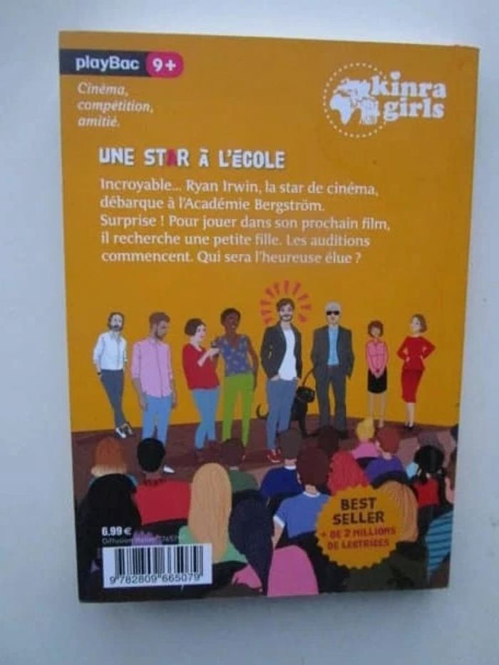 Dans ce roman : cinéma, compétition, amitié. Dès 9 ans. Incroyable... Ryan Irwin, la star de cinéma, débarque à l'académie Bergström. Surprise ! Pour jouer dans son prochain film, il recherche une petite fille. Les auditions commencent. Qui sera l'heureuse élue ? Les Kinra Girls sont 5 jeunes filles talentueuses venues des quatre coins du monde. Loin de chez elles, elles découvrent leurs différences culturelles, s’inventent un code secret, deviennent amies pour la vie… Et surtout, elles vivent des aventures passionnantes ! Éditeur ‏ : ‎ Play Bac 144 pages Âge de lecture ‏ : ‎ 9 - 12 ans Dimensions ‏ : ‎ 12,5 x 18 cm Livre état NEUF! Je vends d'autres livres des Kinra Girls #phil_peg_kinragirls #kinragirls