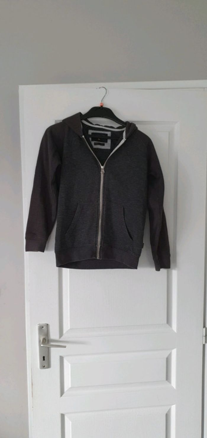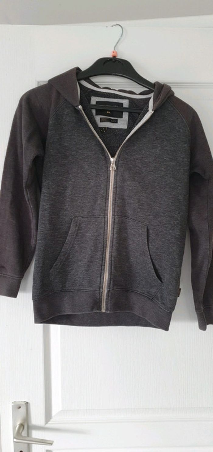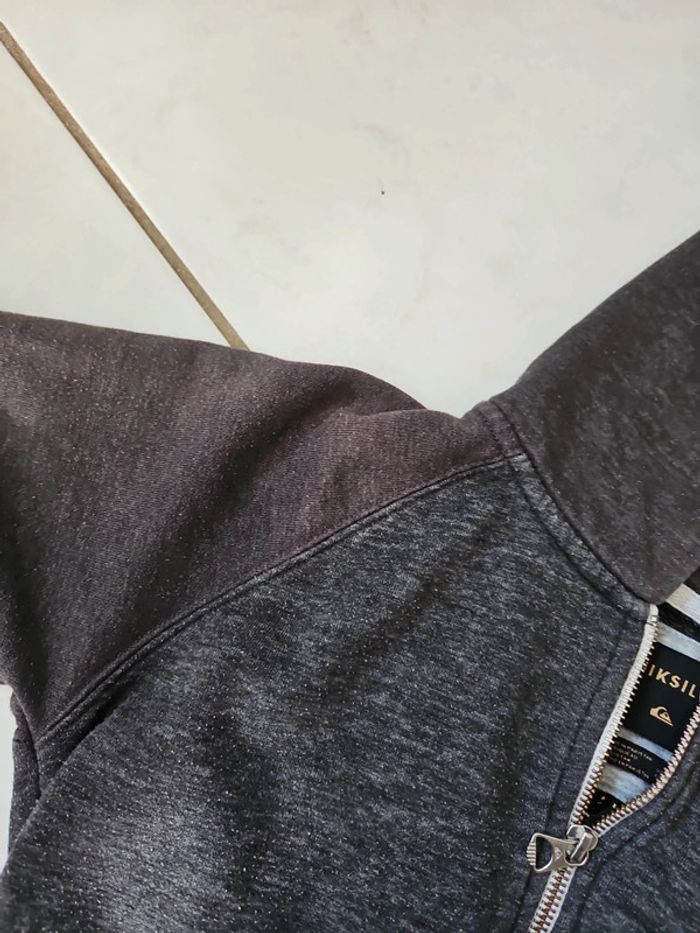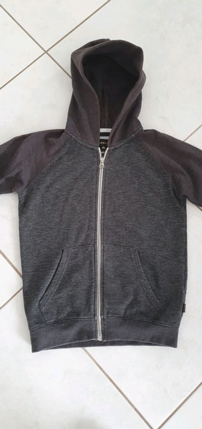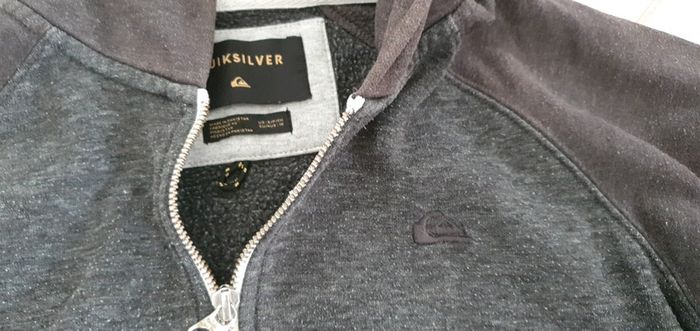 Veste gilet zippé à capuche Gris 2 teintes Quicksilver Légèrement passé sur le bras et la capuche cf photos N'hésitez pas à aller voir mes autres ventes classées par #eloio 😉 #eloiogarcon10ans #eloioquiksilver