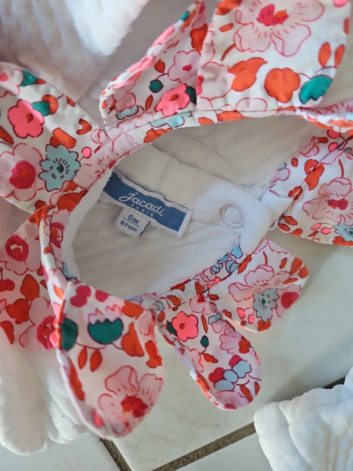 Ensemble bébé fille blanc à col rose à fleurs Jacadi Pression au dos N'hésitez pas à aller voir mes autres ventes classées par #eloio #eloiobebe #eloiobebefille6mois #eloiojacadi