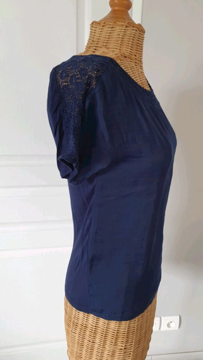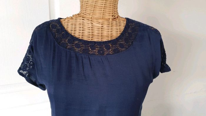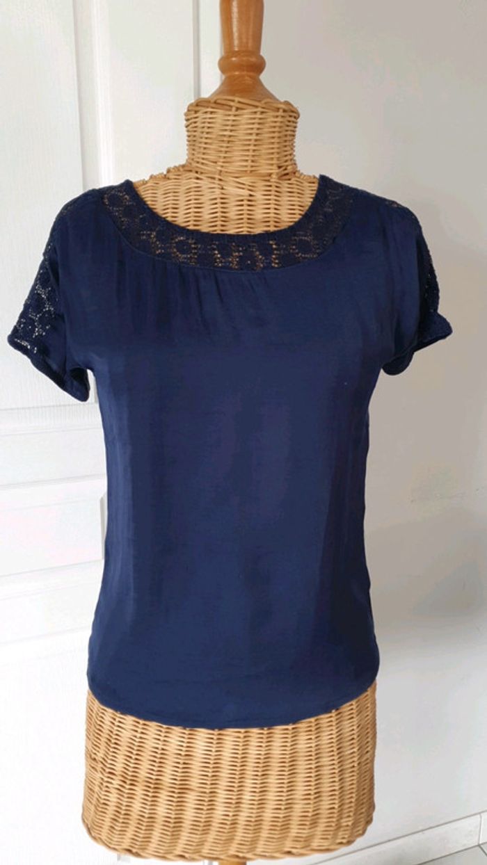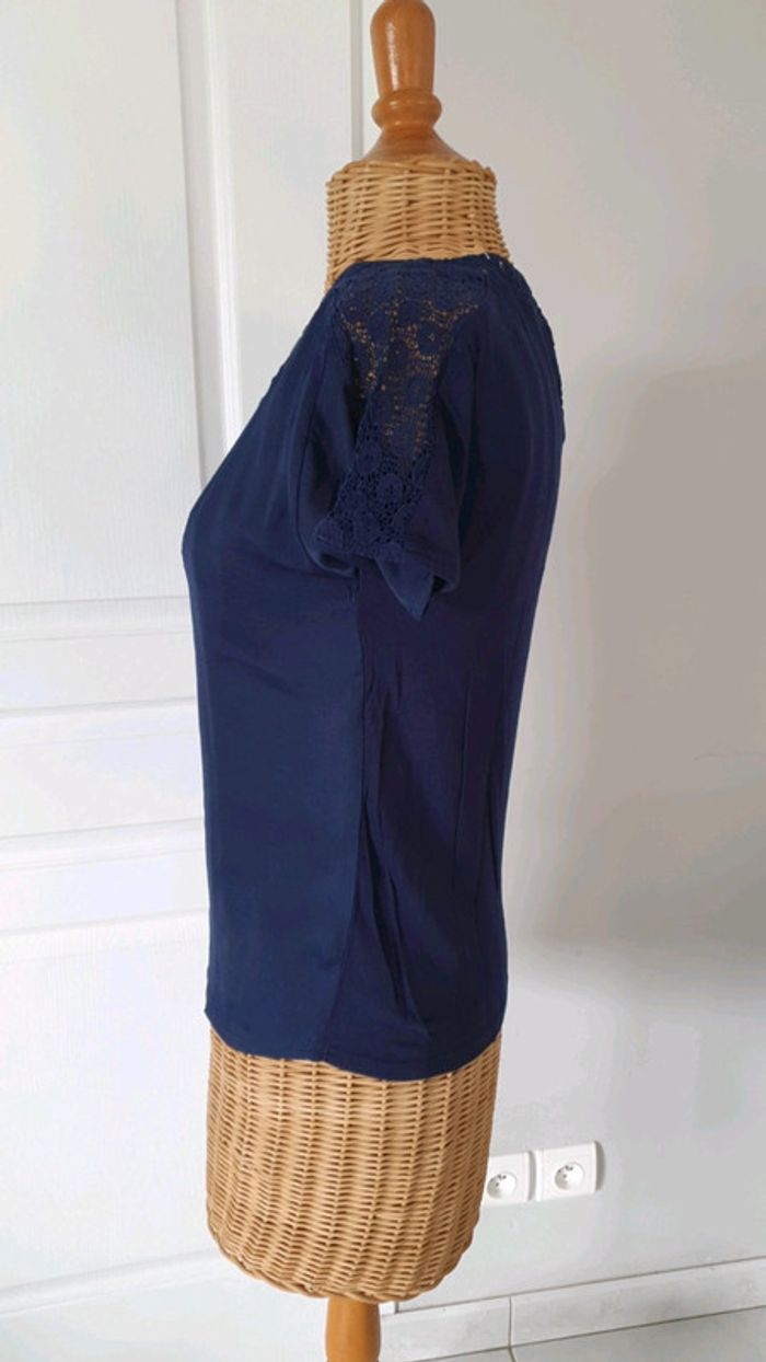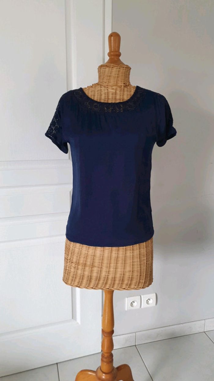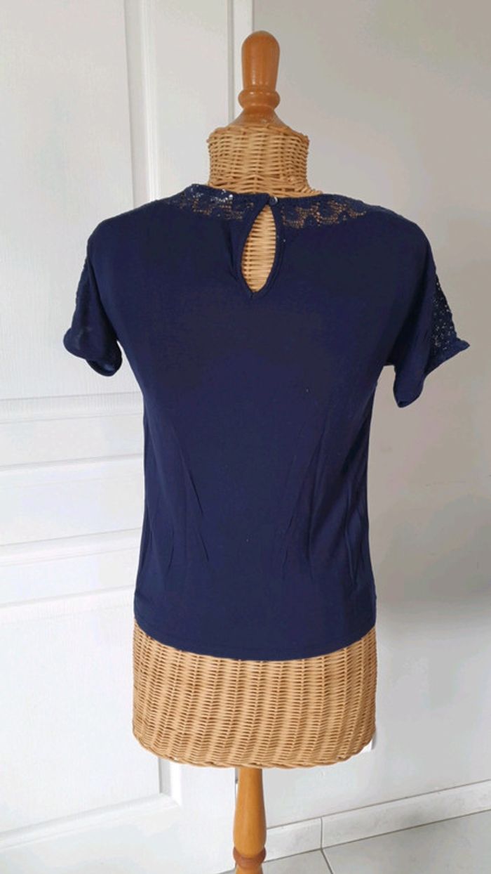 Tee shirt femme ado Bleu marine Naf-Naf Un peu transparent dans le dos Avec sorte de dentelle au col et au bras cf photo N'hésitez pas à aller voir mes autres ventes classées par #eloio 😉 #eloiofilleado #eloionafnaf #eloiofemmexs #eloiofille14ans