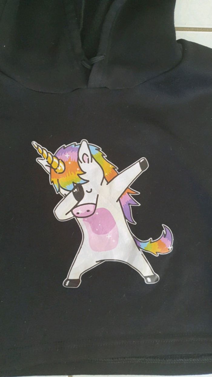 Sweat court noir à capuche avec oreilles Motif licorne qui fait un dabe Femme ado N'hésitez pas à aller voir mes autres ventes classées par #eloio 😉 #eloiofemmes #eloiofilleado #eloiolicorne